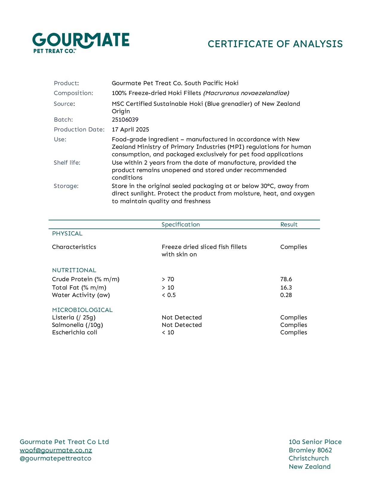 成分:100% 紐西蘭Hoki鱈魚(Macruronus novaezelandiae)