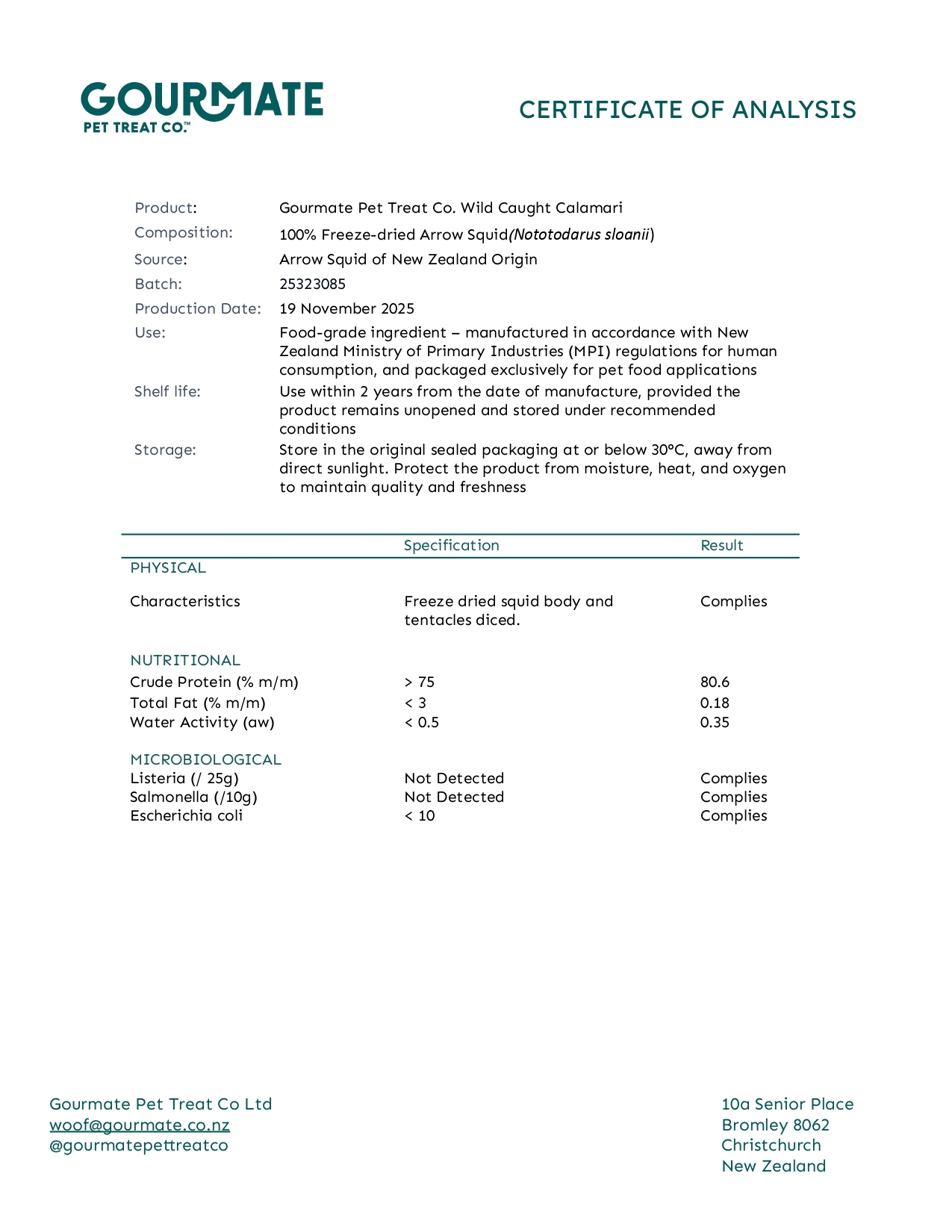 成分:100% 紐西蘭野生箭魷(Nototodarus sloanii)