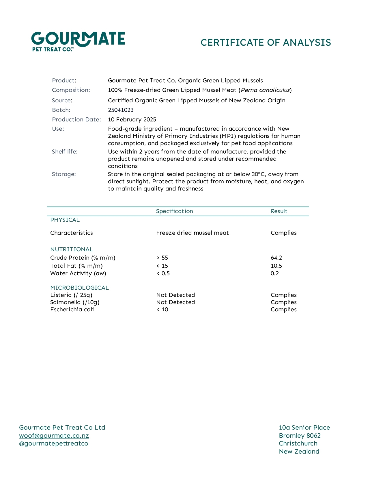 🧾 成分資訊|Gourmate 綠唇貽貝凍乾
