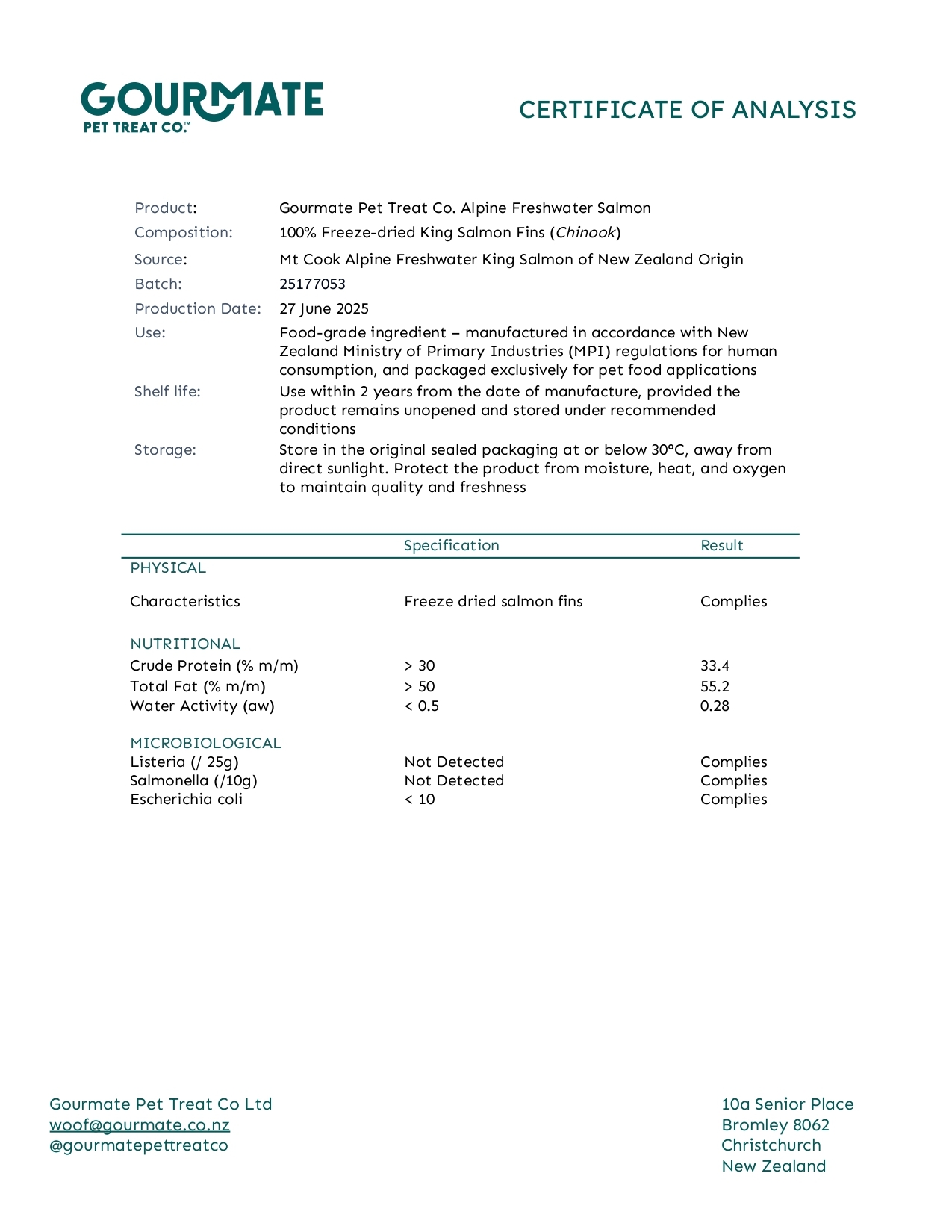 成分:100% 紐西蘭鮭魚鰭邊(Oncorhynchus tshawytscha)
